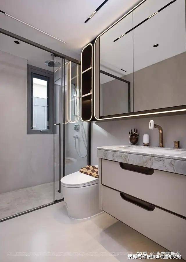 卫浴空间更是藏着独角兽级的惊喜,闵行首个美妆四件套配置,让女性业主的护肤化妆仪式感拉满。